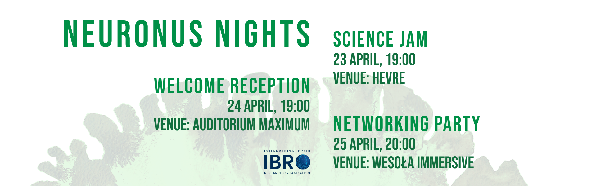 NEURONUS & Young PTBUN Neuroscience Forum is the biggest international neuroscience conference in Poland organized biennially by students from the Jagiellonian University in Krakow. The scope of topics covers general neurobiology, computational, cognitive and affective neuroscience, as well as clinical neurology. The conference aims to gather representatives of diverse sub-disciplines.